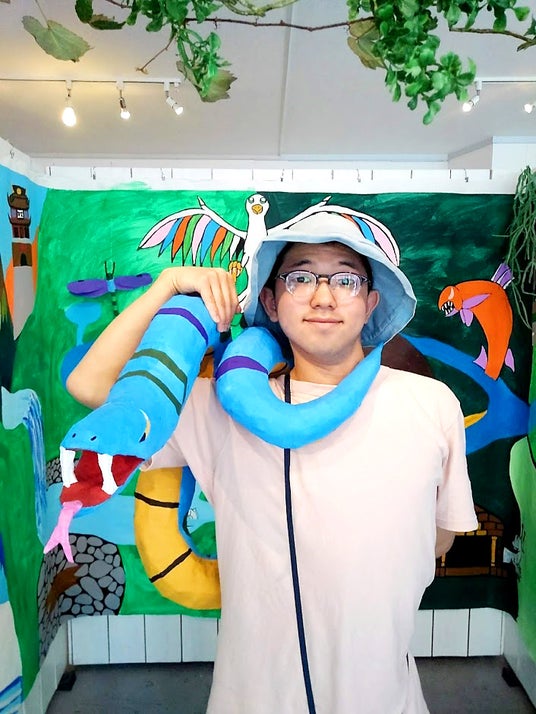 ●三本木海人/1999年生まれ。日本の在来種を中心に生物や植物を様々な素材、手法で制作。最近では画用紙と段ボールの表面の紙だけで作ったオリジナル張り子の紙立体が大好評。日本の文化や在来種のいる地域が大好き。四季それぞれの楽しみをよく知り、春には桜の花びらを拾い集めて作品に活かし、初夏には毎日のように自転車で蛍の集まる森に出かけ、和服を好んで着る。並行して沢山の作品を制作しているので完成まで時間がかかることもある。