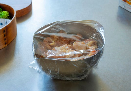 また、ボウル外側はラップがピタッと密着しやすい、なめらかな光沢仕上げ。ラップがしっかり張り付くので、下ごしらえ後に冷蔵庫で休ませるのにも便利。