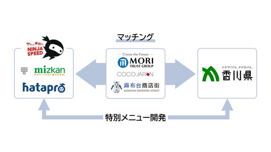 ミツカングループ(以下、ミツカン)とハタプログループ(以下、ハタプロ)が手掛ける寿司ファストフード「NINJA SPEED(TM)」は、麻布台商店街および森トラストグループと連携し、東京ワールドゲート神谷町トラストタワー2階ラウンジにて2025年12月4日より実証販売を開始いたします。本実証販売において、森トラストグループが日本全国の逸品の魅力発信を目的に推進する「CoCo JAPAN」プロジェクトを通じ、香川県の特産品を活かした特別メニューを開発し、期間限定で販売いたします。