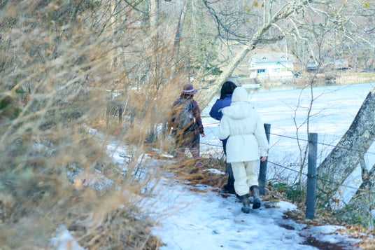 旅のはじまりは、町民セラピストと歩く「冬の森・氷上セラピー」。