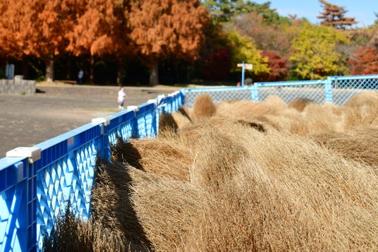 1.コキアの抜き取り・乾燥11月上旬になると、干支の巨大地上絵の素材として使用するために、「みはらしの丘」のコキアを抜き取り、しっかりと乾燥させます。あわせて、園内で採れた間伐材や松ぼっくりなど、地上絵づくりの素材を集めます。