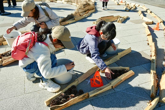 12月6日(土)には、干支の巨大地上絵の制作体験イベントを開催します。昨年は小さなお子様から大人まで、189名のお客様にご参加いただきました。コキアや間伐材、松ぼっくりを敷き詰めていただき、お客さまと共に巨大地上絵を創り上げていきます。【地上絵製作体験】