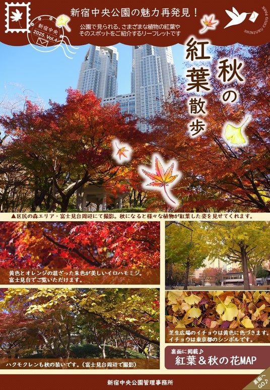 季節の植物などを紹介する公園セルフリーフレット「新宿中央公園の魅力再発見!」の、vol.4