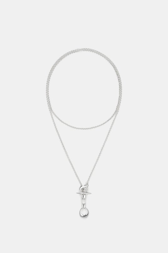 5つのパーツをチェーンで軽やかに連ねたステーションネックレス。