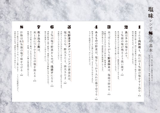 ●【8つの基本】として、食材、調理法別に塩の分量を決めているからわかりやすい!