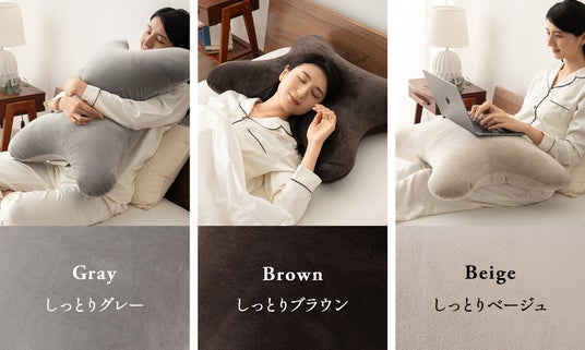 独自のクロス型立体構造により、どの方向からも抱きしめやすく、身体にしっかりフィット。ふんわり抱きしめても、ぎゅっと抱きしめても、心地よい触感を味わうことができます。極小ビーズともっちり触感のカバーが織りなす「むぎゅむぎゅ触感」で、そっと気持ちをほどくような抱き心地を追求しました。