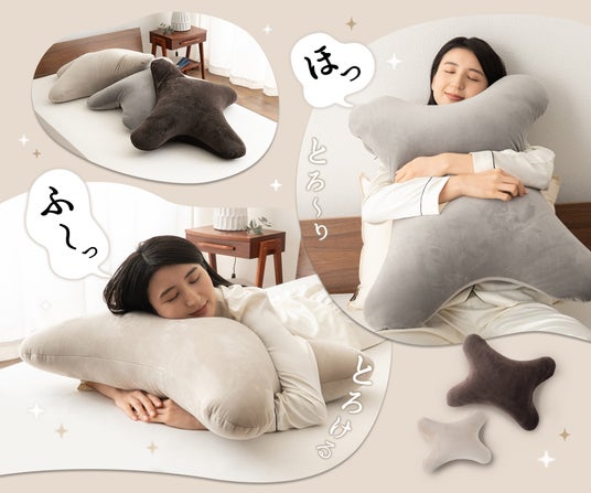 毎日の自宅でのリラックス時間をもっと上質に、一日頑張った自分へのご褒美として抱き心地をとことん追求。『至福の睡眠 マシュマロ 抱きしめピロー』は、抱きつきやすい独自のクロス型形状ともっちり触感で、毎日のリラックスクッションとして日常に癒しと安心感をプラスします。