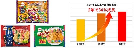 “ばかうけ”“瀬戸しお”“星たべよ”などの米菓を製造販売する、株式会社栗山米菓(本社:新潟県新潟市、代表取締役社長:栗山大河)は、2025年の販売動向をまとめました。今年も、1袋で複数の味を一度に楽しめる「アソート商品」が人気を集め、出荷額は2025年度前年比108%と引き続き堅調、この2年で3割強伸長しました。また、B.LEAGUE 千葉ジェッツ所属・富樫勇樹選手やパペットスンスン、NETFLIXなど多彩な企業・キャラクターとのコラボ商品も話題を呼び、若年層やキャラクター・コンテンツファンを中心に新たなファン層を獲得しました。新規開設したBefco公式オンラインショップ( https://befco-shop.jp/ )では、コラボ商品の人気を受け、開設とともに新規会員数が急増し、その後も順調に推移しています。