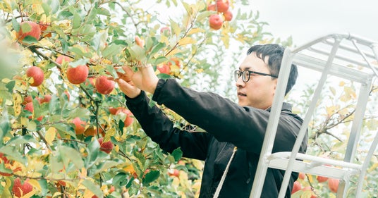 収穫期には、1つひとつ丁寧に状態を見極め、納得のいくりんごだけを収穫しています。