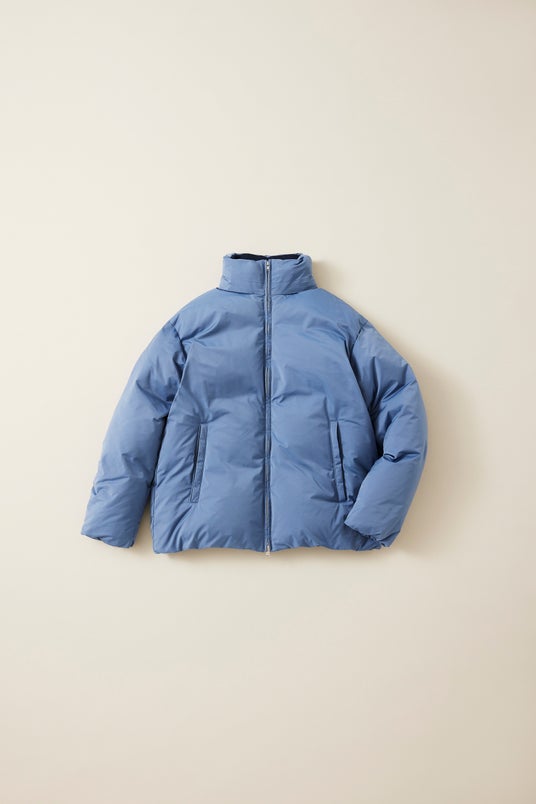 コーディネートの幅が広がるミドル丈のリバーシブルダウン。軽やかな着心地でステッチ面とステッチレスの2つの表情を楽しめます。スタンドカラーは今年らしいムードを演出し、襟を倒せばビッグカラーとしても着用可能。裾のドロストコードを絞ることでコクーンシルエットへのアレンジもできます。