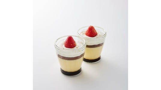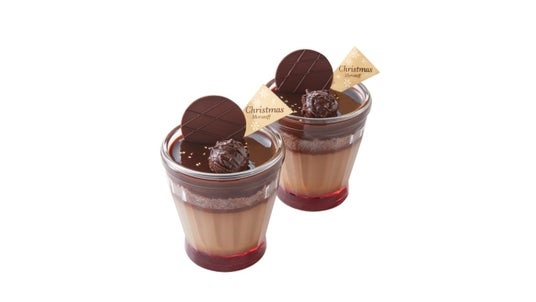 人気のカスタードプリンの上にチョコレートスポンジケーキ、たっぷりのクリームシャンティを重ね、いちごをトッピングしました。とろっとしたクリームといちごで、聖夜を照らすキャンドルを表現した、プリン仕立てのクリスマスケーキです。