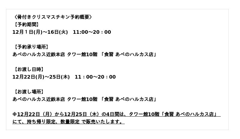 【あべのハルカス近鉄本店】聖夜に香る異国情緒!「食習」の台湾式スパイスクリスマスチキンが、初登場!