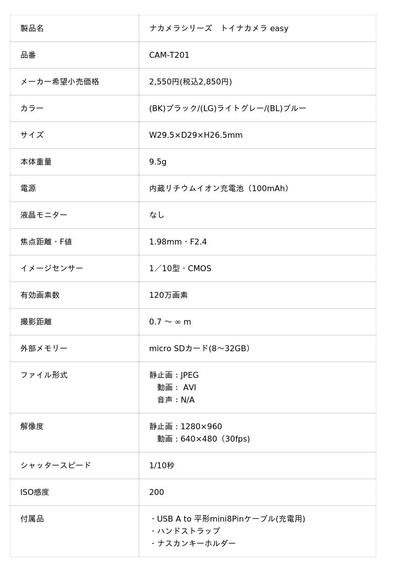 トイナカメラよりさらに小さい、わずか9.5gの小さなミニトイカメラ。撮影には別売りのmicro SDカードを使用します。キーホルダーかと思うほどの小ささですが、撮影できるとわかれば、周りから注目されるかもしれません。