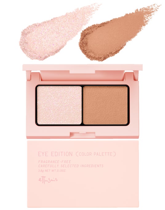 新色のカラーパレットは、くすまず自然な陰影の「キャメルカラー」と、「ピンクカラー」をメインに、きらめくブルー・パープルの多色パールで目もとに奥行がうまれる組み合わせ。