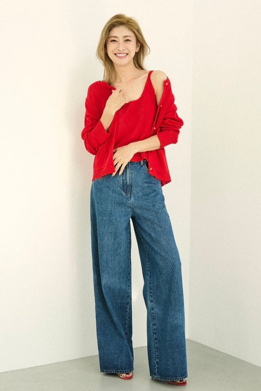 カーディガンは袖口をタイトにせず、ストンと落ちるクリーンなシルエットに。