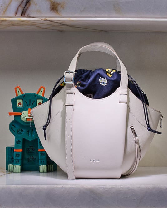 ハンモック フリップ バッグ カサロエベ銀座 限定色「ライトゴースト」¥488,400 中に入っているバッグ(別売り): キャッツ ドローストリングポーチ スモール ¥49,500