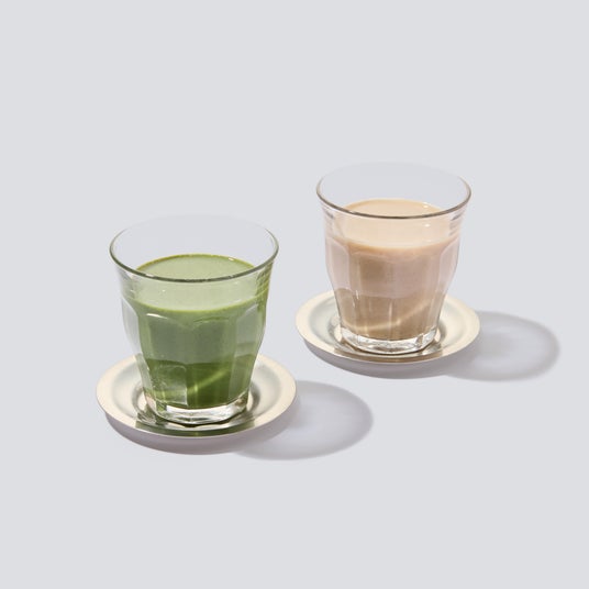 苦味とうまみを引き立てた抹茶のチャイと、きなこの香ばしさにほんのり塩味のアクセントが効いたチャイのセット。それぞれを活かしつつスパイスの心地よい刺激をたのしめます。お好みのミルクでお召し上がりください。