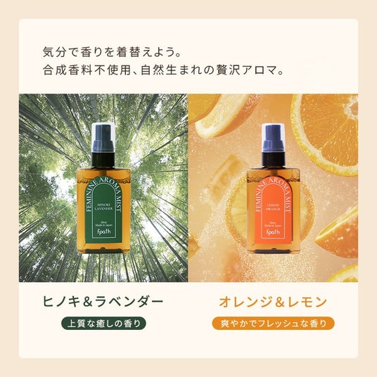 「見えない部分だから後回し」はもう終わり。 1,000名を超える※1女性の声から生まれた、シュッとするだけの「アロマミスト」と、寝る前の「ご褒美オイル」で叶える、がんばらないセルフケア。