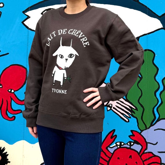 キャラクターのヤギの“イボンヌ”が人気で、食器やアパレルなど、キャラクターグッズも多数取り扱っています。