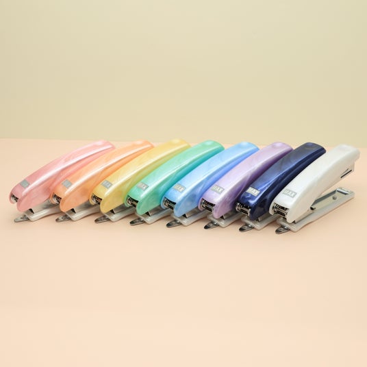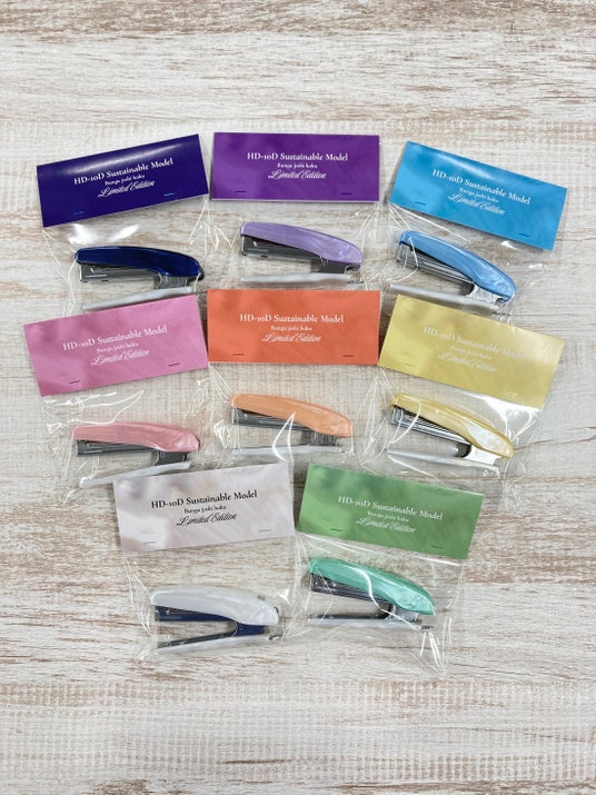 『HD-10P』は、スぺパ(スペースパフォーマンス)に優れた、コロンとしていてかわいいコンパクトなホッチキスです。ホッチキス本体の全長は約5cmと当社スタンダードモデルHD-10NXの全長9cmと比較してコンパクトです。また、落ち着きがありながら地味にならない色合いのくすみカラーは、柔らかい雰囲気があります。