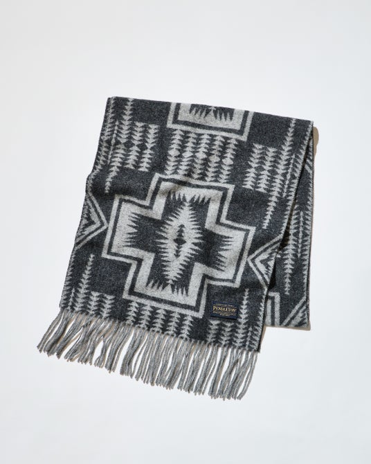 それぞれにネイティブアメリカンの伝統的なモチーフであるハーディング柄を落とし込んだデザインが特長で、バーニーズ ニューヨーク別注の素材を採用し、レザー仕様のロゴネームを施したラグジュアリーなアイテムです。肉厚なジップアップカーディガンは、化繊ではなくカシミヤをブレンドすることで柔らかい風合いに。スカーフはカシミヤ100%の肌馴染みの良い質感で、<ペンドルトン>からも恐らく初めての素材別注だというほど、バーニーズ ニューヨークテイスト溢れるアイテムです。