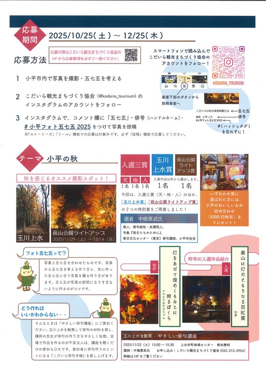 今回のテーマは、「小平の秋」。応募期間は、2025年10月25日(土)~12月25日(木)まで。