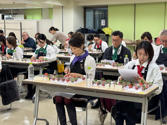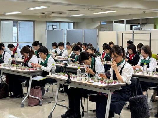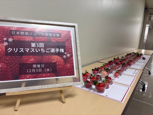 一般社団法人日本野菜ソムリエ協会(所在地:東京都中央区、代表理事:福井栄治)は、2025年12月3日(水)に、クリスマスシーズンの12月においしい『冬いちご』を決める「クリスマスいちご選手権」(以下、本選手権)を開催しました。今年は昨年よりエントリー数が増え、全国から79品が集まりました。評価員である野菜ソムリエが商品名や産地、生産者情報などを伏せて食味。