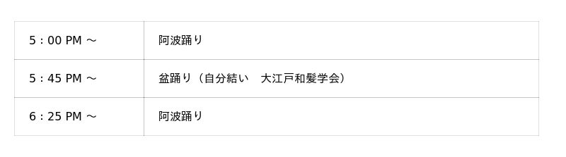 会場では、日本の伝統文化である盆踊りとともに、活気あふれる阿波踊り、さらにヨーヨー釣りや輪投げといった屋台も登場し、誰でも気軽に楽しめる内容となっています。