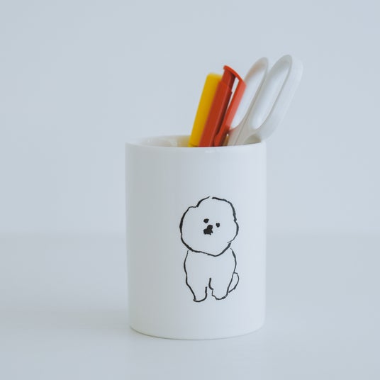 卓上で筆記用具を入れたり、キッチンでカトラリーを入れたりと、さまざまに活躍する磁器製のツールスタンド。容量約350ccなので、フリーカップとしての使用もOK。電子レンジ、食洗器の使用が可能です。