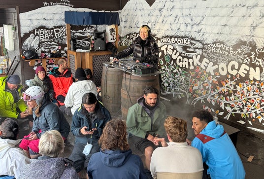 雪山、音楽、そして足湯の温もりが重なることで、滑る人も滑らない人も、ふっと肩の力が抜ける時間が生まれると考えています。