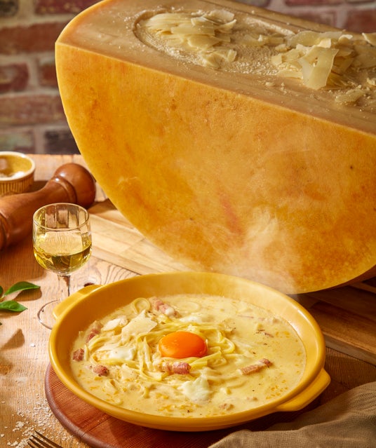 「パルミジャーノ・レッジャーノ」はイタリアの特定地域で伝統的な製法を守って作られ、厳しい規定をクリアしたDOP認定を受けた24か月熟成のみを使用。本格的なチーズの深みと味わいをご堪能いただける土鍋提供「とろける7種チーズのカルボナーラ」、「パルミジャーノチーズのリゾット」などは「パルミジャーノ・レッジャーノ」をワゴンサービスで、お客様の目の前で削り仕上げます。