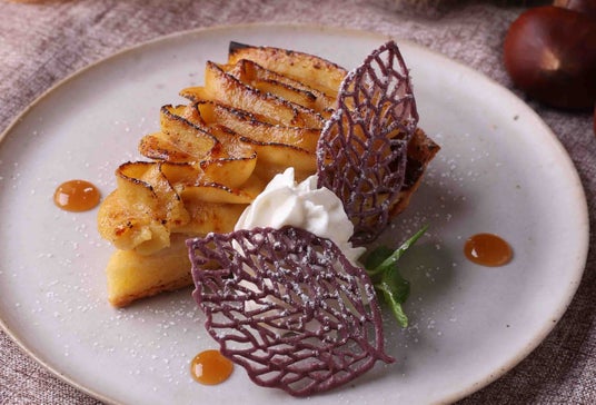 右:【季節限定】シルクスイート焼き芋のモンブラン ブリュレタルト *2026年1月初旬まで 880円