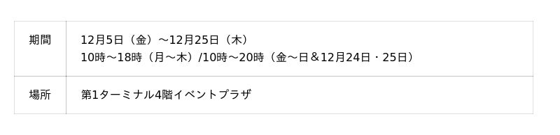 空の玄関口で、昨年よりさらに華やかになったクリスマスマーケットを満喫してみませんか。