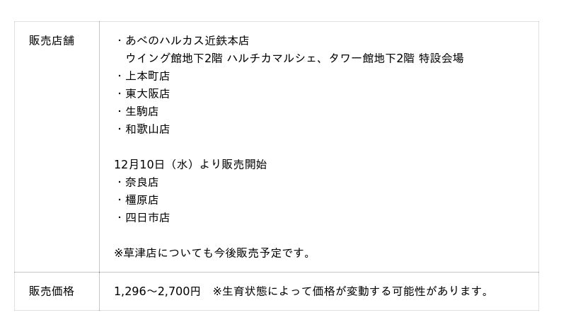 ※育成状態などにより販売の中止または時期、価格が変更となる場合がございます。