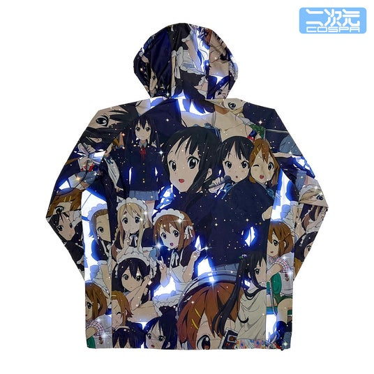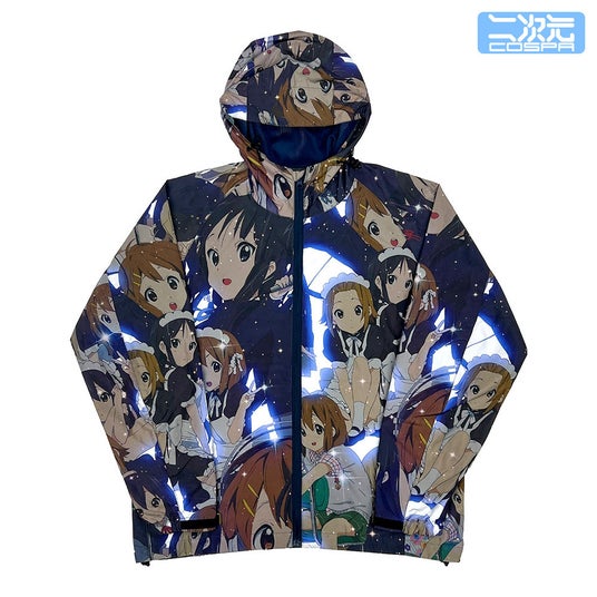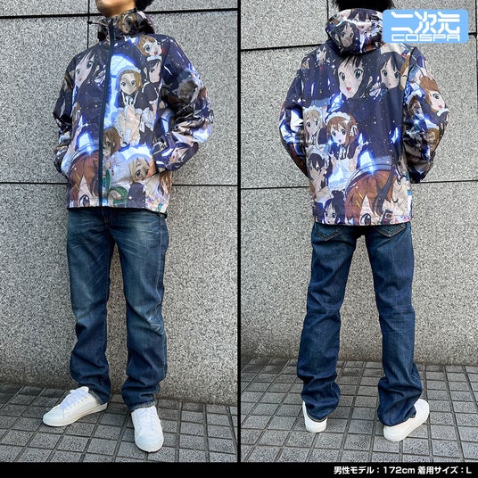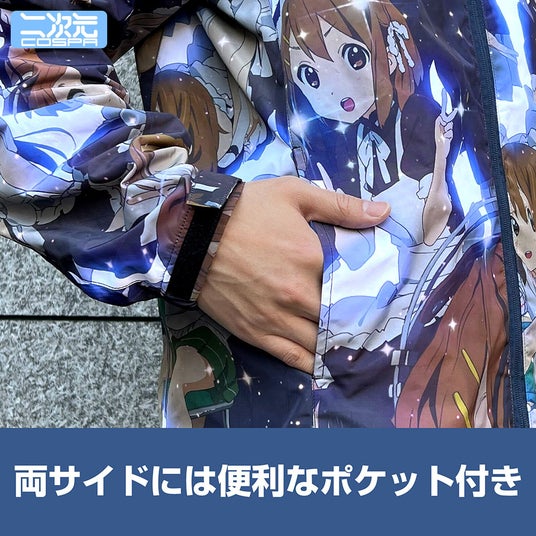 「平沢唯」たち放課後ティータイムの5人を全身にプリントした「フルグラフィックシェルジャケット」が二次元コスパから新登場。