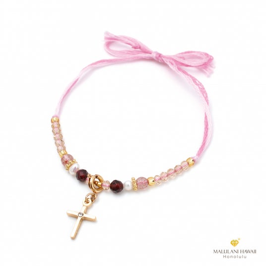 幸運をもたらす誕生石を紡いだ、上品なリボンブレスレット。