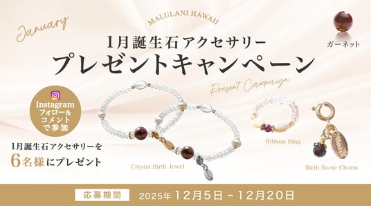 ハワイ発祥の天然石アクセサリーブランド「マルラニハワイ」にて、1月の誕生石「ガーネット」を使用したアクセサリーをプレゼントする、冬の特別キャンペーンを開催いたします。