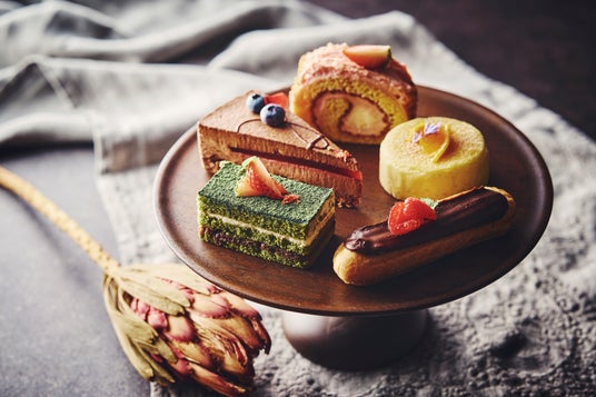温かいバウムクーヘン(¥1,050)、温かいバスクチーズケーキ(¥1,050)、苺のフルーツショートケーキ(¥1,050)、イタリアンプリンアラモード(¥1,050)、栗のモンブラン(¥1,050)、あんぽ柿のミルフィーユ(¥950)、ヴェリーヌ(¥850)