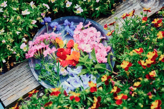 ハーブガーデンをイメージした前菜スタンド、メイン料理には、レストランに隣接するテラスで収穫した色鮮やかでフレッシュなエディブルフラワー(食用花)やハーブをふんだんに使用しています