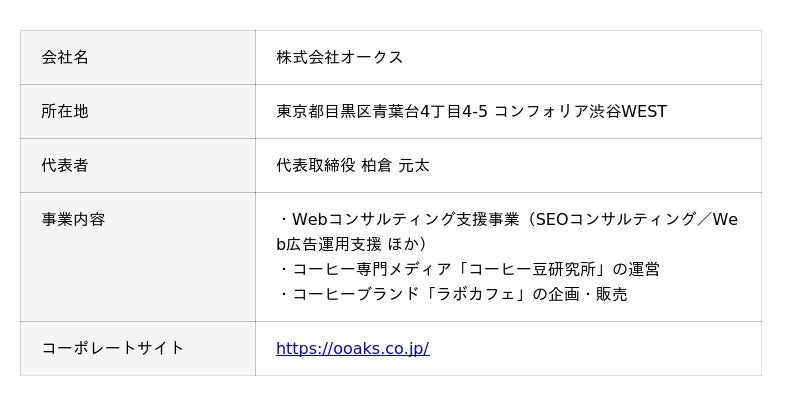- 株式会社オークス 広報担当- E-mail:info@ooaks.co.jp
