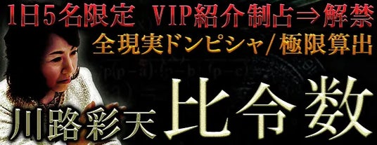 【1日5名限定/完全予約・紹介制】各界大物VIPすらも予約キャンセル待ち! 正確無比な極限算出により絶対的な“解”を導き出す、川路彩天の究極の鑑定術『比令数』がついに解禁です。1度味わったらもう他の占いでは満足できなくなる、極上凄絶的中占をご体感下さい。