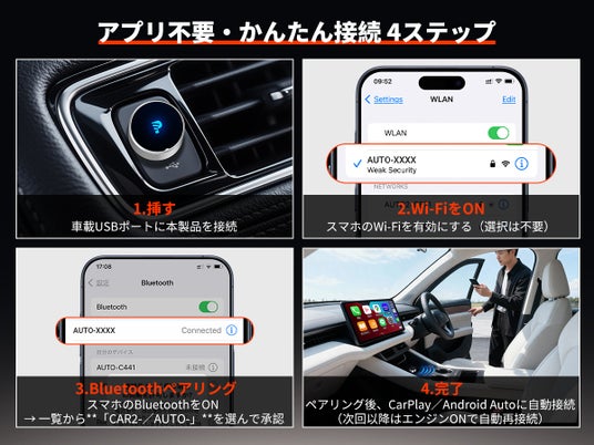 乗るたびに配線する時代は終了!USB-Cポート搭載車でも挿すだけ即ワイヤレス!配線の手間ゼロでナビ・音楽・通話がすぐ使える、GETPAIRR最新CarPlay/Android Autoアダプター新登場