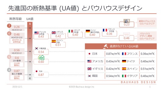 先進国各国の断熱基準(UA値) 断熱等級6以上が“生命を守れる基準“と言われている