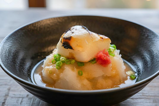 大根は「穢れを落とす」「体を整える」食材として古くから行事食に使われてきました。消化を助ける酵素も含まれ、正月のご馳走で疲れた胃腸を休める意味も。”「絡まる」= 良縁・運を取り込む”という語呂の良さからも縁起の良い食べ方とされています。冷めてもやわらかさとうまみが残るマンゲツモチだからこそ、大根おろしでさっぱりいただくのもおすすめです。