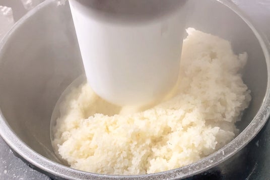 とくに注目していただきたいのは、この“びよ~~ん”と伸びる、圧倒的な粘り!杵つき製法で空気をしっかり抜くことで、煮崩れしにくく、米本来の旨み・粘り・なめらかさが最大限に引き出されるのです。