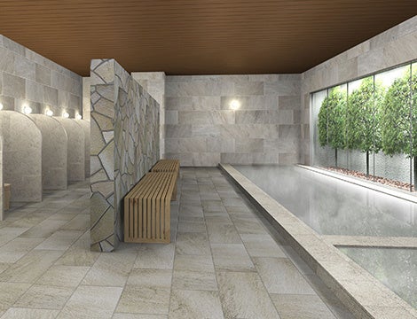 また、1階には大浴場に隣接したリラクゼーションラウンジをご用意しており、湯上がり後にくつろげる癒やしの空間としてご利用いただけます。無料でご利用いただけるマッサージ機や、気軽に楽しめる漫画コーナーも設置予定です。
