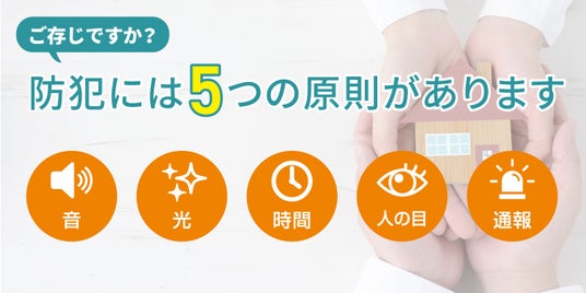 防犯には5つの原則(音、光、時間、人の目、通報)があります。