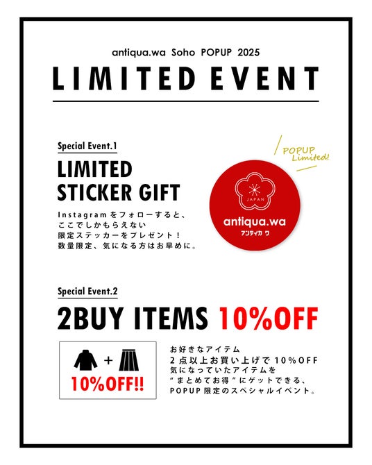 そのSohoの中心地でPOP UPを開催する今回のPOPUPは、これまでオンラインを中心に展開してきたantiqua.waが、実際に“デザインに触れていただく場”をつくるために企画されたものです。