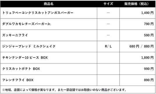 また、デザートメニューでは「ジンジャーブレッド ミルクシェイク」を期間限定で販売します。甘くてスパイシーな味わいはハンバーガーと相性が良く、美味しくお召し上がりいただけます。