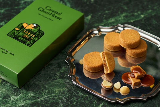 キャラメルゴーストハウスは、キャラメルオバケと黒猫のメルちゃんが紡ぐ小さな物語。丁寧に煮詰めたキャラメルに紅茶葉※をひとつまみ加え、上品に仕立てたキャラメル菓子がテーブルを彩ります。優しい甘さのなかに宿る幸せなひと時をキャラメルゴーストハウスがお届けいたします。19日(金)に発売する『キャラメルゴーストセレクション12個入 迎春パッケージ』は、人気の定番焼き菓子3種を詰め合わせたキャラメルオバケの自信作。